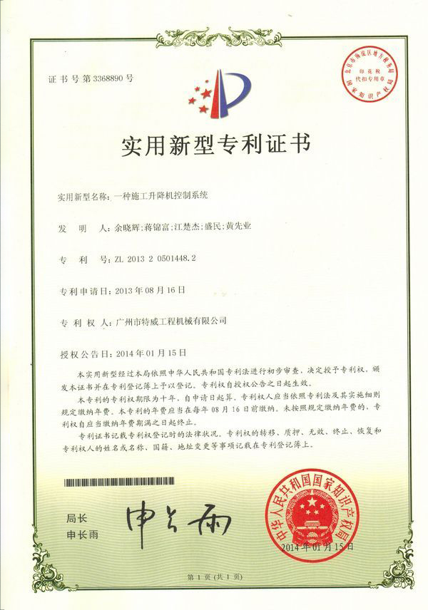 廣州市特威工程機械有限公司地處廣州市白云區神山鎮,廣清高速神山出口附近,是一家施工升降機的專業生產廠家。公司成立于2011年,占地100000多平方米,注冊資金1060萬元,現有員工300余人其中工程技術人員33人,高級技術人員52人。